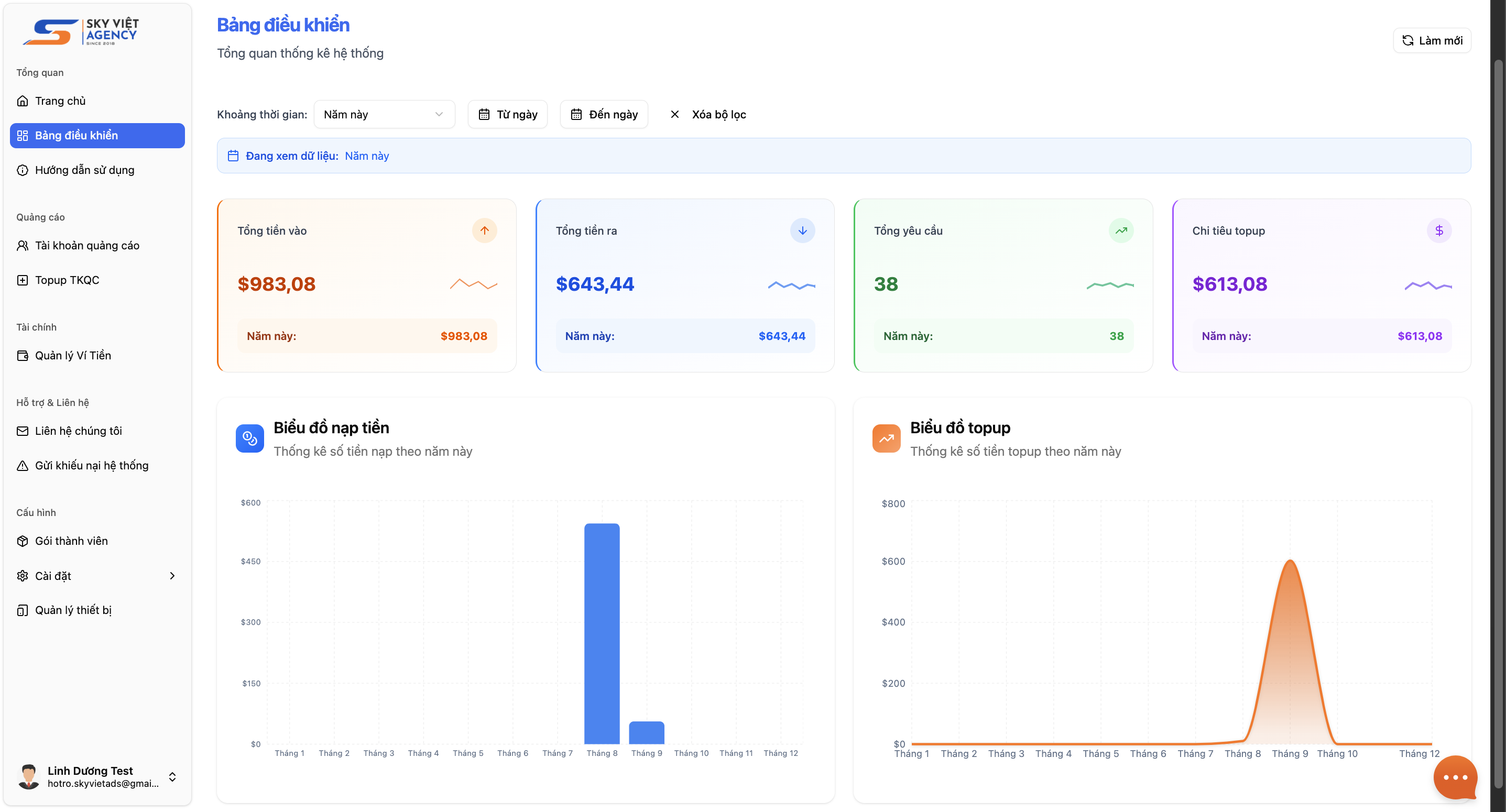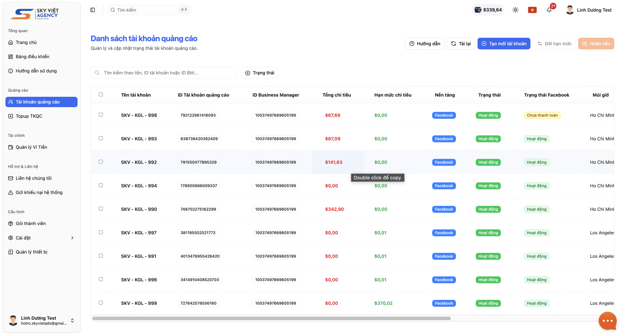 Với hệ thống quản lí vô cùng rõ ràng, minh bạch kết hợp tính năng siêu tối ưu quy trình sử dụng tài khoản cho khách hàng chỉ gồm 4 bước “TẠO TÀI KHOẢN – NẠP TIỀN VÀO HỆ THỐNG – YÊU CẦU CẤP TKQC – SỬ DỤNG ” sẽ mang đến cho quý khách 1 trải nghiệm an toàn , nhanh chóng và hiệu quả.